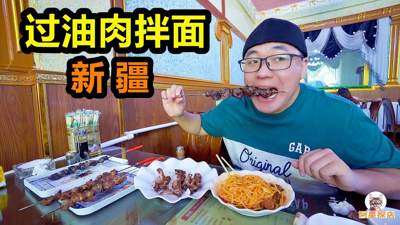 新疆美食怎麼能少了碳水?過油肉拌麵就是人們日常飲食的最愛。拉扯得均勻筋道的麵條,噴香的過油肉,攪拌在一起紅潤油亮,每一口都滿足,居然還能加面吃到飽。還有烤羊肝、馕坑肉,配拉麵吃也很美味,阿星吃得很攢勁。 How can Xinjiang cuisine lack carbon water? Oiled Meat Noodle is a favorite of people’s daily diet. The noodle that are evenly stretched, the fragrant over-oiled meat, stirred together,rosy and oily, every bite is satisfied, and even the noodle can be eaten full. There are also grilled lamb liver, naan pit meat, and ramen noodle are also delicious to eat.Axing was very satisfied.