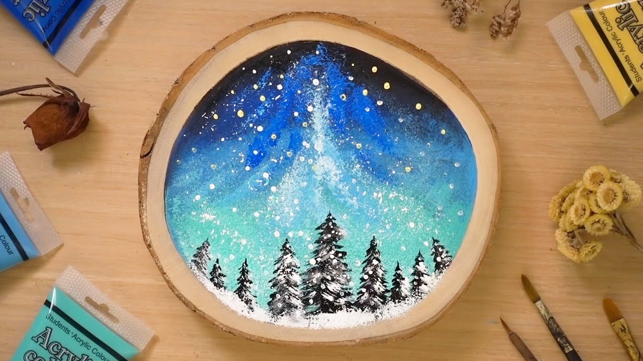 It is brilant imagination and Painting in wood slice .The cold c🌎ol🌳💙💚ors are in harmony with each-others🏃😍🌟👌🌈🌠🔵❄💥🏃God bless you😍👋!