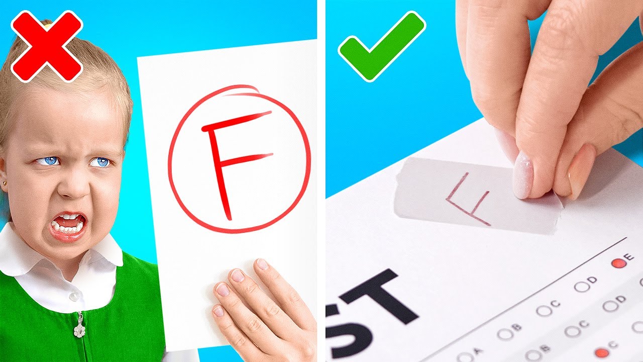 嘿,大家好!我們準備了大量的網紅學校小秘訣和有趣的DIY創意。如果你得了“F”,別擔心!你可以輕鬆更改成績哦;) 用膠棒快速將其去除。按照我們影片中的教程進行操作吧!