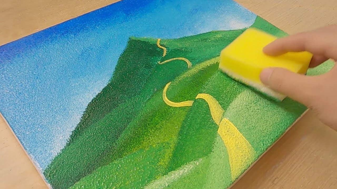 Art Creative easy Hills landscape layered Painting sponge TECHNIQUE