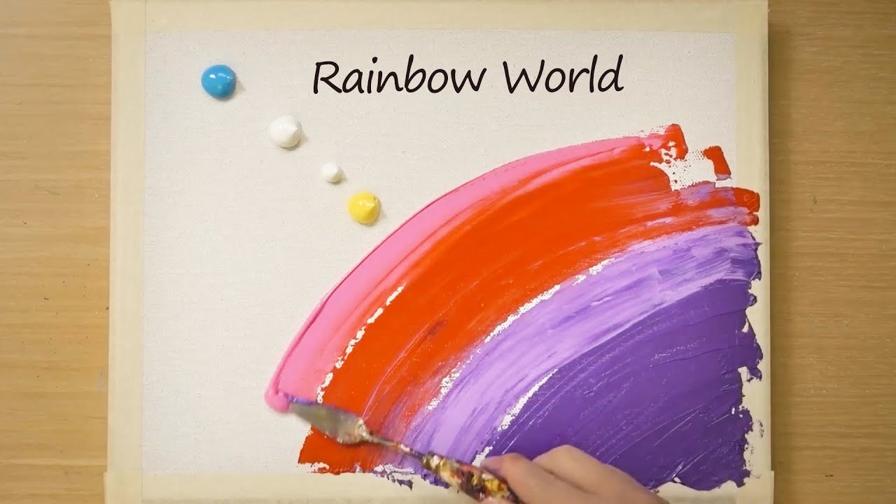 Rainbow World Painting / Blue Mountain / Easy Masking Tape Painting