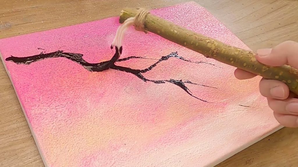 How to draw a cherry blossom tree with string wooden brush / Acrylic Painting Techniques – Jay Lee Painting