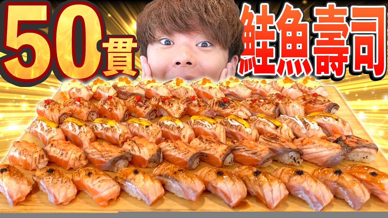 今天挑戰的是50貫鮭魚壽司🍣超多種類超幸福😋 為了這個餓男的我 給我多多按個讚 或是 鮭魚壽司🍣(三😭)