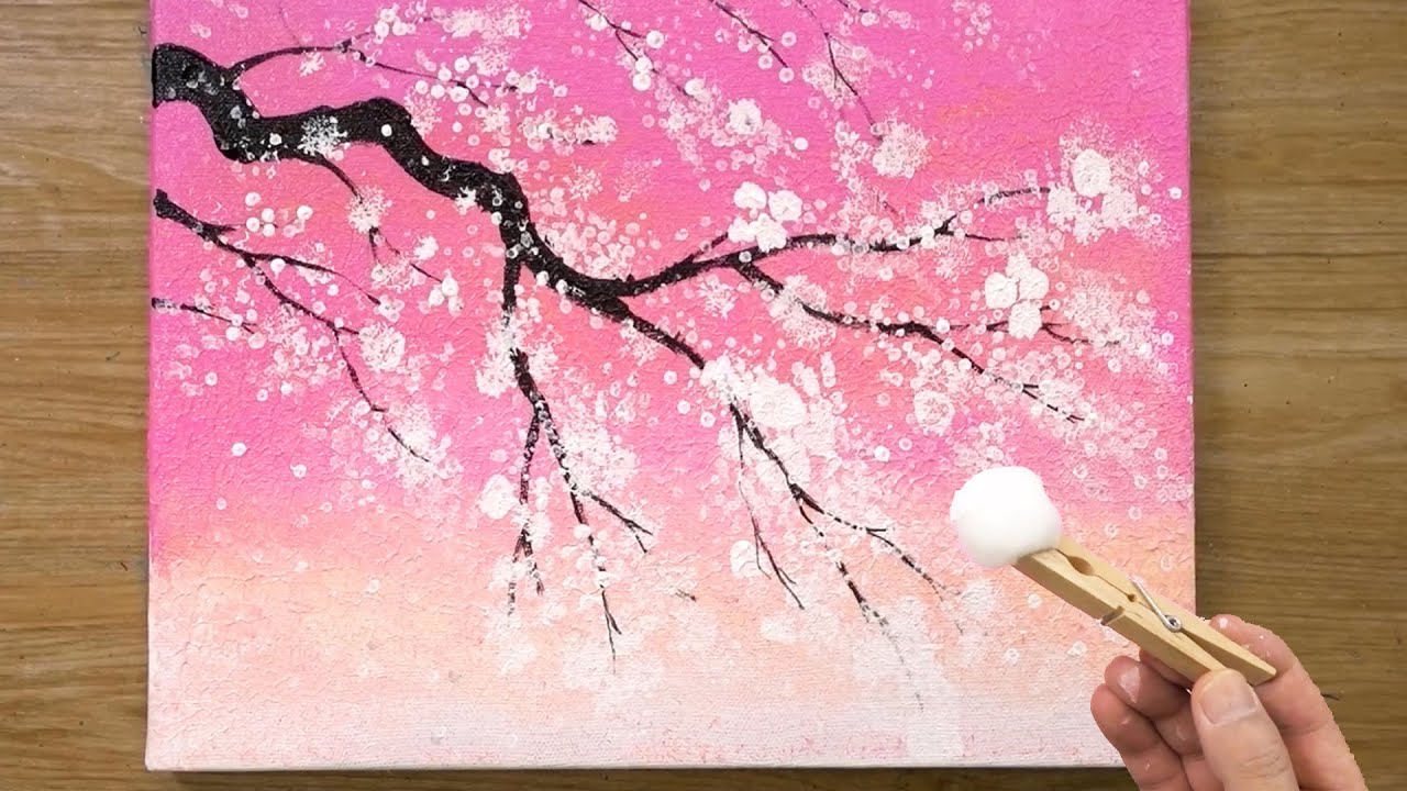 Painting of a cherry blossom tree in acrylics.