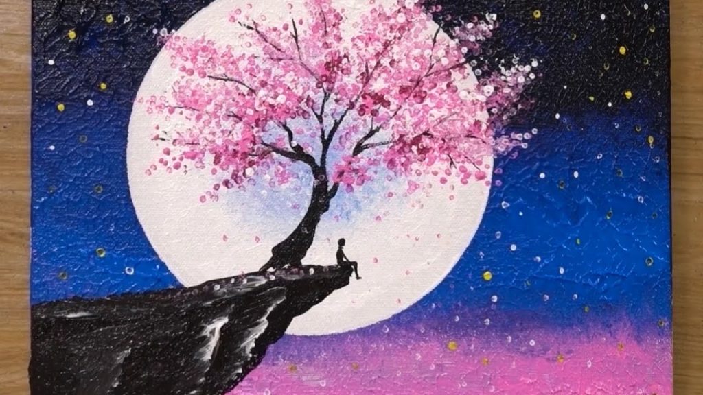 acrylic blossom cherry Moonlight Painting TECHNIQUE