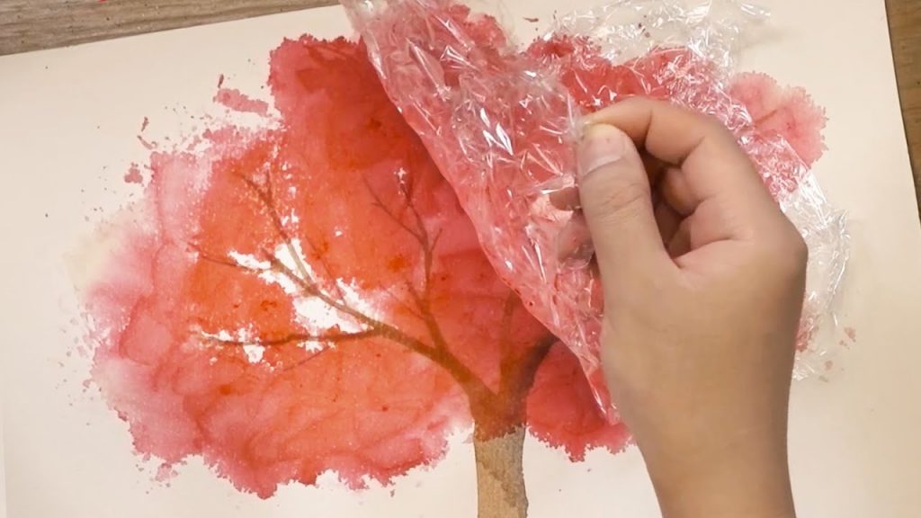 Painting of a Tree using Cooking Paper and Cling Film/ Acrylic Painting Techniques