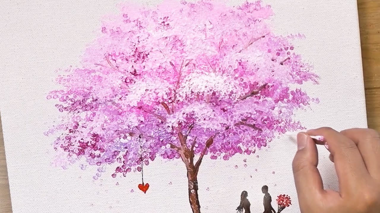 Painting of a Pink Cherry Blossom Tree / Acrylic Painting Techniques