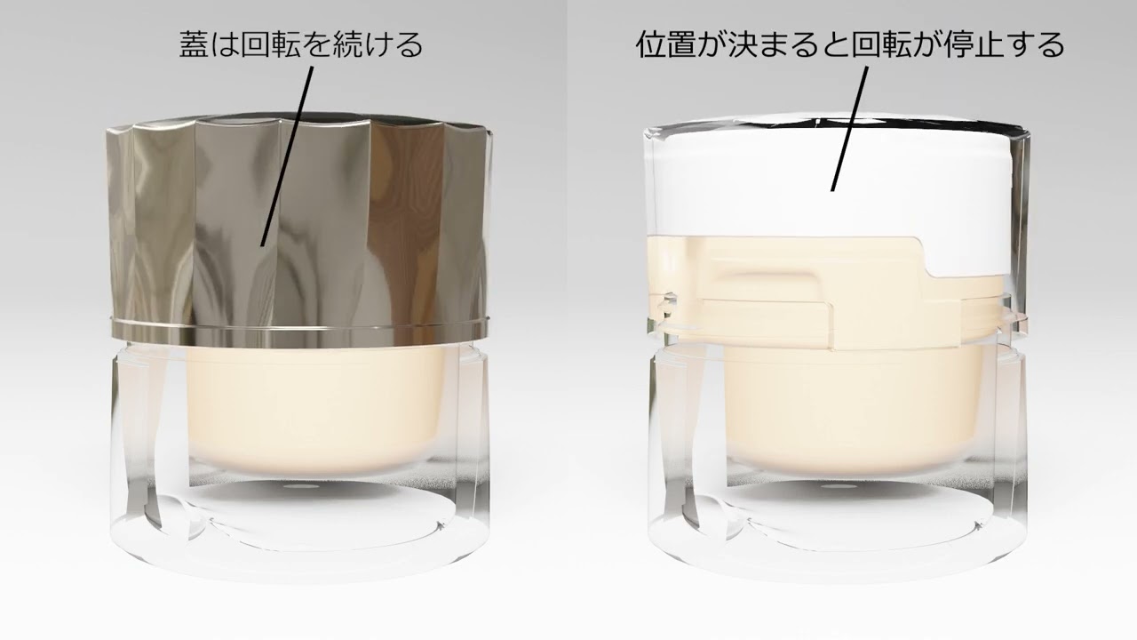 自動回転制御メカニズムを搭載したスパチュラ自立格納容器|資生堂