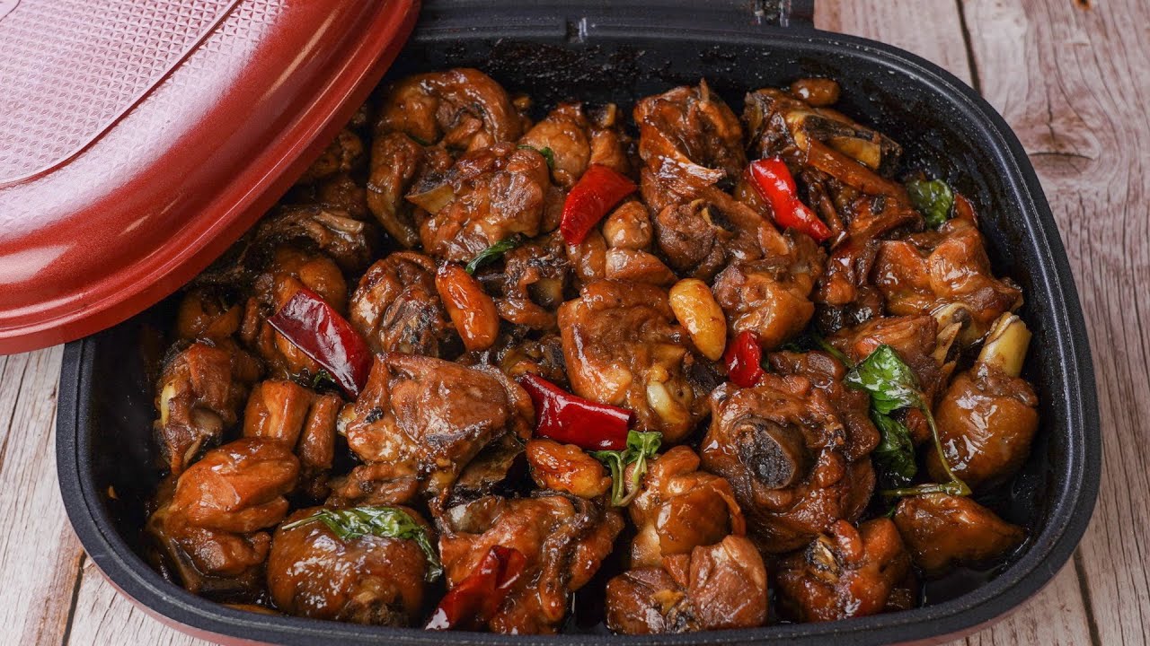 📌買HAPPYCALL新升級陶瓷熱循環不沾雙面鍋復古紅/莫蘭迪→ https://bit.ly/3k2SiFb 材料麻油100公克sesame oil 100g 雞肉1200公克chicken 1200g 蒜頭60公克garlic 60g 薑片40公克ginger 40g 辣椒片30公克chili 30g 醬油100公克soy sauce 100g 米酒100公克cooking rice wine 100g 糖2茶匙sugar 2tsp. 九層塔30公克basil leaves 30g 作法1. 冷鍋下麻油,放入薑片、蒜頭開小火,煸至微焦香。 (麻油冷鍋煸炒才不易變苦) 2. 放入辣椒片、雞肉後,蓋上鍋蓋煎五分鐘。 (超強密封效果,燜著就入味) 3. 整鍋翻面,再燜煎五分鐘至兩面微焦。 (不用一直翻炒,只要翻一下兩邊都均勻) 4. 打開鍋蓋加入醬油、米酒、糖,再蓋上鍋蓋燜3分鐘入味。 5. 打開燒至收汁,加入九層塔拌勻即可。 – 楊桃美食網http://www.ytower.com.tw Youtube https://www.youtube.com/user/ytower01 Facebook https://www.facebook.com/ytower01