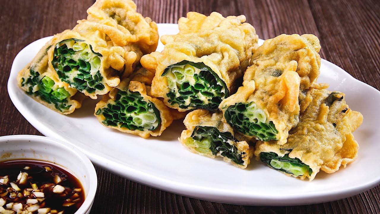 📌買方形黑鑽5件組按這裡→ https://lihi1.cc/xYttA 炸青蔥材料: 青蔥適量scallion qs. 低筋麵粉160公克low gluten flour 160g 黃豆粉40公克soy flour 40g 雞蛋2顆eggs 2pcs 鹽1/2茶匙salt 1/2tsp. 冰水300cc ice water 300cc 蒜蓉醬適量garlic sauce qs. 作法: 1.麵粉、黃豆粉過篩後,與雞蛋、水一起調勻至無顆粒狀。 2.靜置15分鐘,讓麵質更滑順。 3.挑蔥:蔥白太老和乾掉的都要剝除,才不會影響口感。 4.取適量蔥,先從蔥白處折約12公分,再預留一根蔥綠後,來回將蔥折起來,最後用預留地蔥綠繞起,尾端塞好。 5.熱油鍋至180℃。 6.將捲好的青蔥,均勻沾裹麵糊,入鍋油炸。下鍋後先不要攪動,等麵衣定型再翻動蔥捲。 7.炸到麵衣金黃酥脆,撈起約1分鐘,再轉大火回鍋二炸,起鍋瀝油,食用前切小段,沾蒜蓉醬即可。 – 楊桃美食網http://www.ytower.com.tw Youtube https://www.youtube.com/user/ytower01 Facebook https://www.facebook.com/ytower01