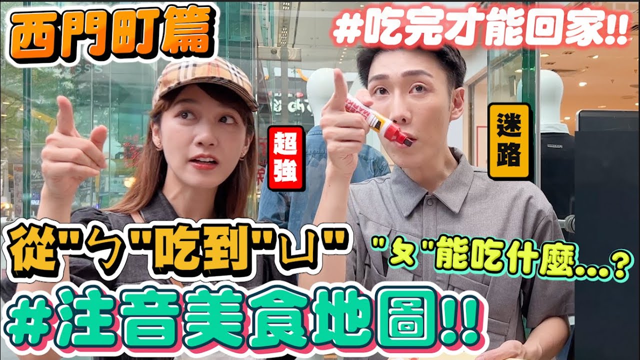 各位觀眾!全新單元來囉! !大家有沒有想過在「西門町」玩美食系列的遊戲呢?這次工作人員把遊戲跟實務結合了😉❤️ 從來沒想過我會來吃這些東西”ㄙ”開頭的”ㄌ”開頭的食物到底要吃什麼😂???? 沒吃完不準回家!求關主放過我們RRRRR…… 意外發現超美味店家,大家快收藏起來吧👍 #美食#美食遊戲#西門町#台北美食#注音#注音挑戰#小吳遊戲#泱泱#注音美食#西門町挑戰►【訂閱YouTube頻道: goo.gl/qZbiUb】 ►【追蹤Instagram : http://goo.gl/29cDAv】