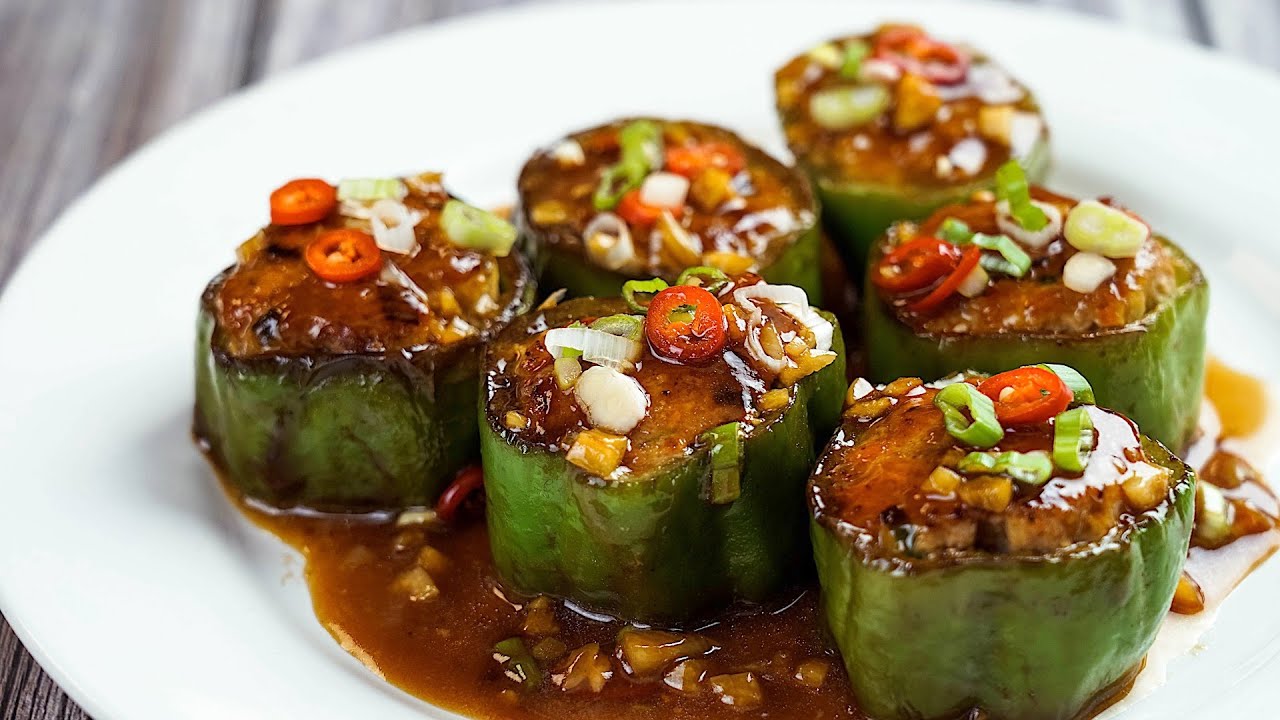 📌買IRIS OHYAMA日本鑽石塗層IH不沾鍋具按這裡→ https://lihi1.com/sAy8M 📌買KitchenAid 5Cup食物調理機(新) 按這裡→ https://lihi1.com/XKefs 材料: 青椒2根green pepper 2pcs 絞肉400e公克minced pork 400g 胡蘿蔔末30公克carrot 30g 蔥末20公克sallion 20g 薑末15公克ginger 15g 雞蛋1顆egg 1pc 蒜末15公克garlic 15g 調味料: A 醬油1大匙soy sauce 1tbsp. 米酒1大匙cooking rice wine 1tbsp. 鹽1/4茶匙salt 1/4tsp. 白胡椒粉少許white pepper powder qs. 太白粉少許potato starch qs. 醬料: 蠔油1大匙oyster sauce 1tbsp. 醬油1茶匙soy sauce 1tsp. 糖1/4茶匙sugar 1/4tsp. 太白粉少許potato starch qs. 水30㏄ water 30㏄ 作法: 1.青椒去蒂頭、去籽。 2.豬絞肉再剁細一點,口感較細緻。 3.豬絞肉加入胡蘿蔔末、蔥末、薑末和雞蛋,以及調味料A,充分拌勻為餡料。 4.青椒內刷上薄薄一層太白粉,再將餡料塞入青椒中,塞實塞滿後,切成適當小段。 5.熱鍋熱油,放入鑲青椒,中小火將兩面煎至金黃。 6.將所有醬料混合調勻。 7.鍋中撒入蒜末,淋入作法6醬料,拌燒至收汁、肉餡微微收縮即可。 – 楊桃美食網http://www.ytower.com.tw Youtube https://www.youtube.com/user/ytower01 Facebook https://www.facebook.com/ytower01