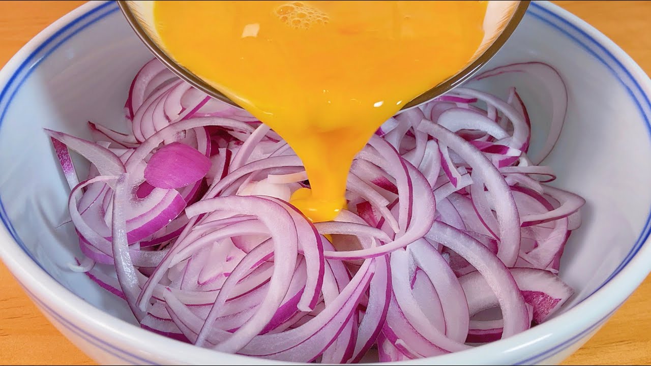 把蛋液倒入洋葱中 改成 洋葱倒入蛋液中不浪费蛋液