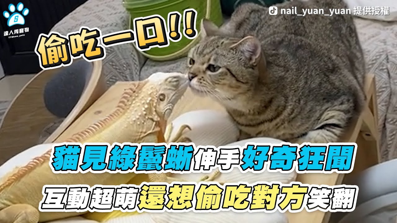 #貓咪 #綠鬣蜥 #好奇
