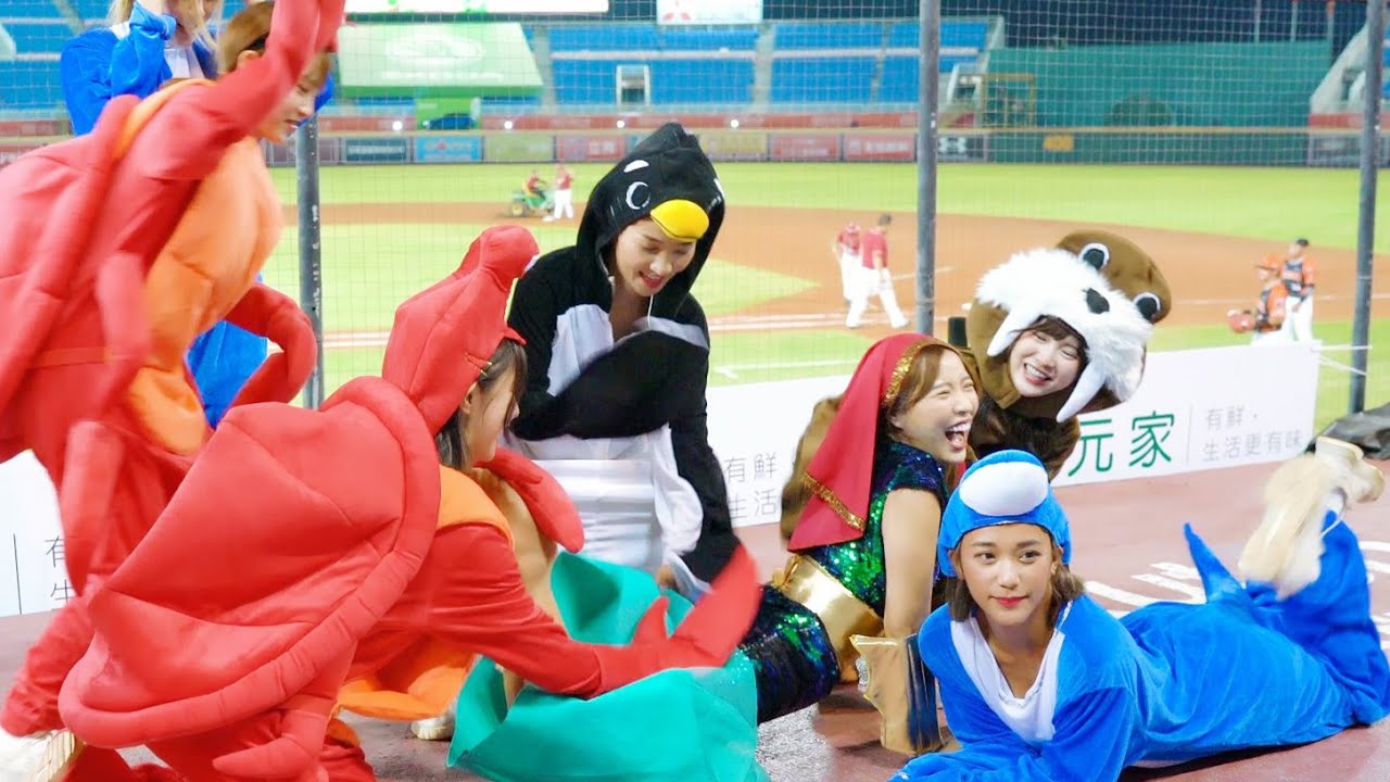 2022/09/18 #統一獅 VS #樂天桃猿 東區中場,#樂天女孩 #rakutengirls : 孟潔、若潼、苡萱、慧慧、阿布舞、紫庭、十元 化身水族世界海鮮,來個變裝應猿!