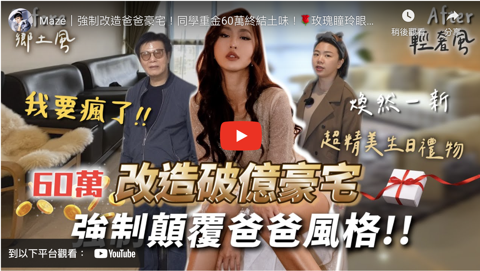 爸爸老是在我小時候不斷摧殘我硬要讓我習慣他的風格 這三十年來不斷逼我沈溺在玫瑰瞳鈴眼環境中🌹 實在是痛苦不堪!今天我真的受不了了! 必須徹底顛覆這可怕的風格,好好的改造他的房子 於是我找了我的再興同窗同學—龐甄嬉,簡簡單單的幾句話 不用過多的解釋他就能把我想要、喜歡的美感通通呈現出來! 我這一輩子從來都沒享受過這樣精美氣氛的裝潢 在爸爸要求不能硬裝的狀態下,我們嘗試了客廳與飯廳的改造 光是這兩個空間我的同學就能幫我打造了超乎我預期的作品,真的非常驚艷! 他叫龐甄嬉,是我的同學 也是一位非常成功的女企業家! 希望大家能支持他的作品和心血! 大家趕快來一同目睹他的手藝吧! 最偉大的作品:#創喜設計 #房屋改造 https://www.jcpcdesign.com/ YT:https://bit.ly/3UCFdmb FB:https://bit.ly/3Oc2Q2M IG:https://bit.ly/3trNH3x LINE:@111dgnpq 聯絡電話:02-2395-1513 投影機:ViewSonic M2 https://bit.ly/3g1gZTe #ViewSonic #M2微型投影機 #ReimageYourSpace 窗簾:築邑窗簾 https://bit.ly/3UAe4jU 聯絡電話0961-167-161 香氛:Sensory Space | 軒舍汭股份有限公司 https://bit.ly/3TB7d8D 聯絡電話:02-27881131 Follow me on https://linktr.ee/chialing_maze #薔薔 #bedroommakeover