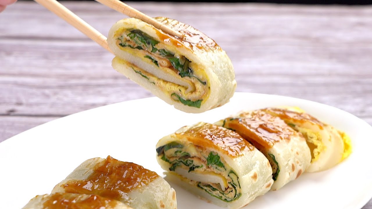 📌買(柿紅/櫻粉)釉光陶瓷不沾三鍋4件組按這裡→ https://lihi1.cc/GGBmz 材料雞蛋2顆egg 2pcs 九層塔適量basil leaves qs 中筋麵粉160公克plain flour 160g 太白粉20公克tapioca starch 20g 水250ml water 250ml 鹽1/4茶匙salt 1/4tsp. 醬油膏適量thick soy sauce qs 作法1.中筋麵粉、太白粉、鹽、水混合均勻成麵糊,靜置10分鐘。 2.雞蛋、九層塔混合均成蛋液備用。 3.熱鍋,倒入1茶匙油,放入2大杓的麵糊,以中火煎至凝固變色。 4.將麵糊翻面煎至兩面都上色略焦香。 5.將煎好的餅鏟起,鍋中倒入蛋液,再放回餅壓一下。 6.煎至蛋熟後翻面再煎一下,折起成捲狀起鍋。 7.切成小段,再塗上醬油膏即可。 – 楊桃美食網http://www.ytower.com.tw Youtube https://www.youtube.com/user/ytower01 Facebook https://www.facebook.com/ytower01