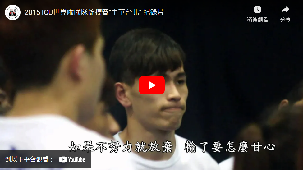 首頁 » i運動 » 啦啦隊 » 2015 ICU世界啦啦隊錦標賽”中華台北” 紀錄片