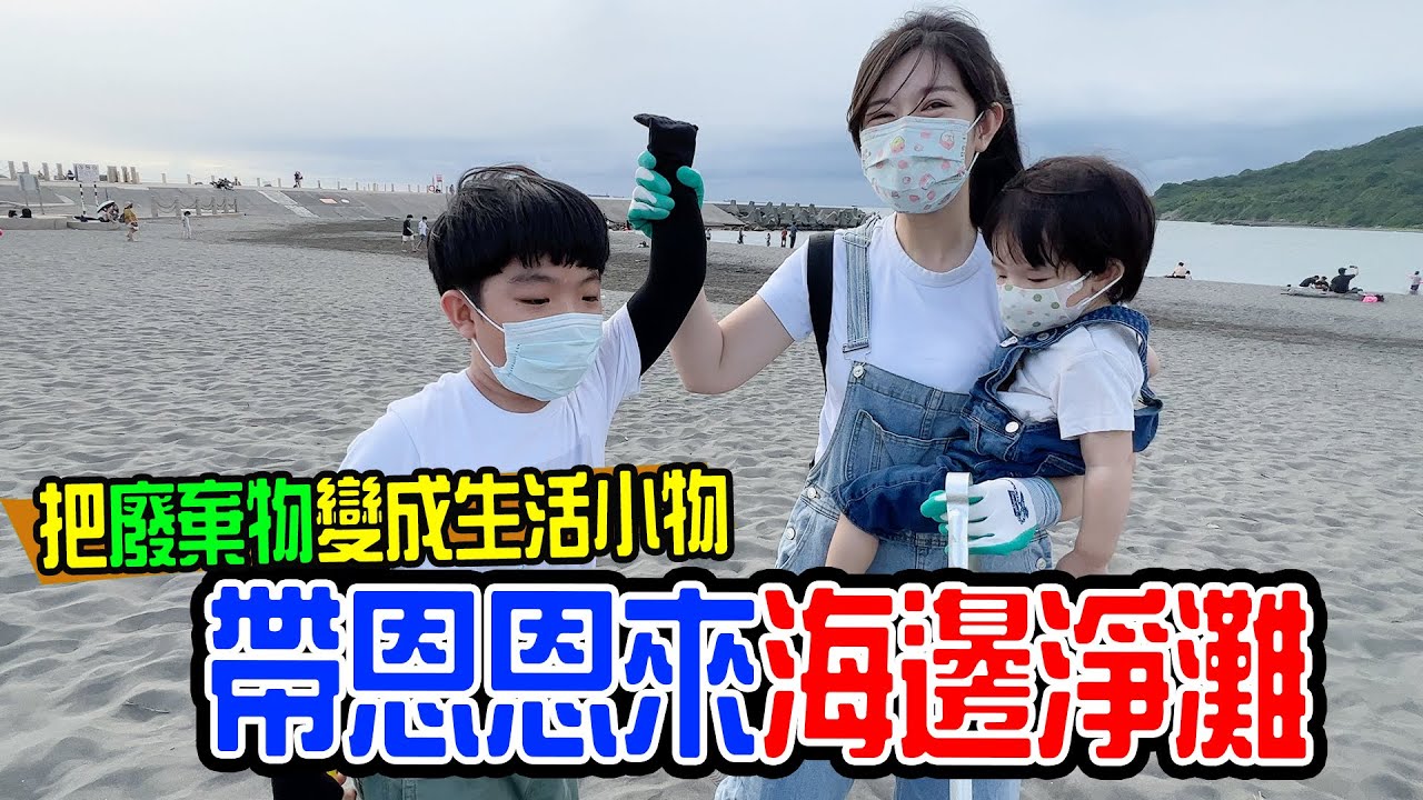 恩恩很棒,會淨灘了,