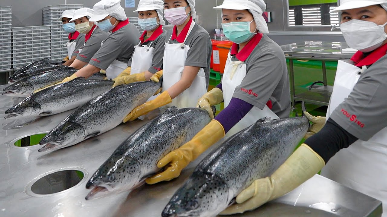 三文魚切魚和三文魚蓋飯製作! / 鯉魚加工, 鯉魚饅頭 – 台灣食品廠