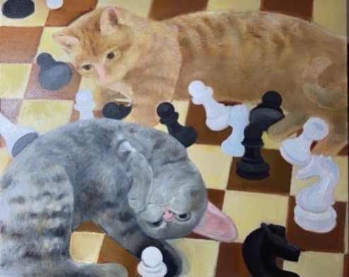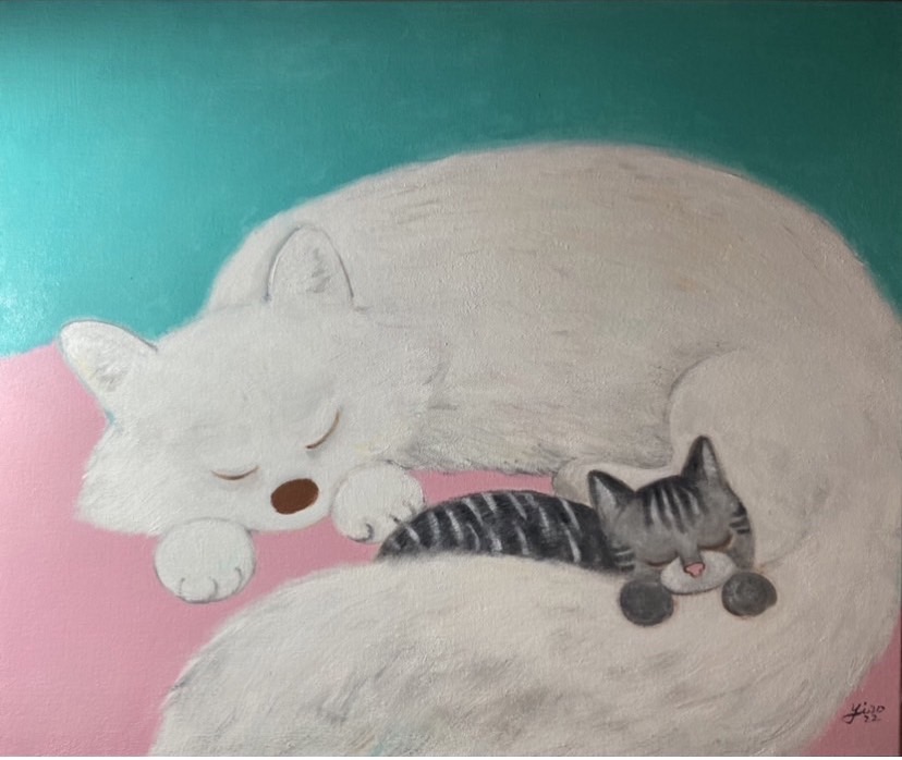 在這一系列中的動物,享受冬日陽光餽贈的禮物,不論是牠們經歷過的第幾個冬天,最初跟久別重逢一樣是美好的獲得,不論是小時候聽的塞翁失馬的故事,或是老子說的禍福相倚,我覺得都在平衡得失心的震動,動物對於得失心的淡然的本質與藝術坦白純粹的質性相通,雖然有些內心與行為較不易捉摸的動物會被稱為狡猾,其實有些神話與宗教故事裡,賦予了許多動物神性還有帶來福運祥瑞,充滿著對人類以外物種的敬畏,對異樣神秘天賦的探索,與不設限框架的創作方式與方向在精神上相遇,季節氣交替時分的熟悉又新穎的輪廓浮現出的狀態。