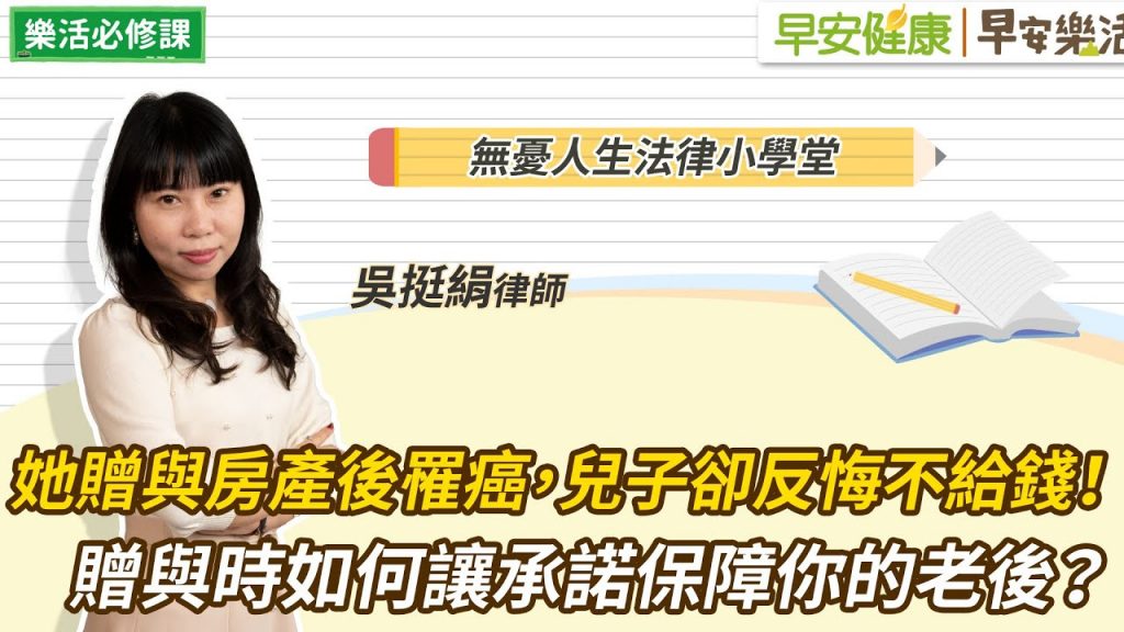 0:00 她贈與房產後罹癌,兒子卻反悔不給錢!贈與時如何讓承諾保障你的老後?