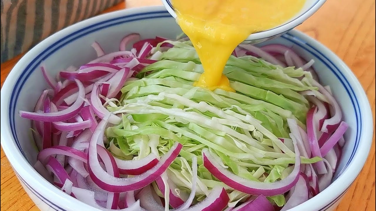 做飯 入秋後要多吃包菜教你新吃法不炒不燉不涼拌出鍋比吃肉還香小穎美食 創新 包菜 吃飯 家常 家常菜 家庭 小穎美食 新吃法 早餐 早餐餅 洋蔥 火腿腸 營養 玉米麵 生活 美食 菜糊 蔬菜 雞蛋 麵粉 麵食