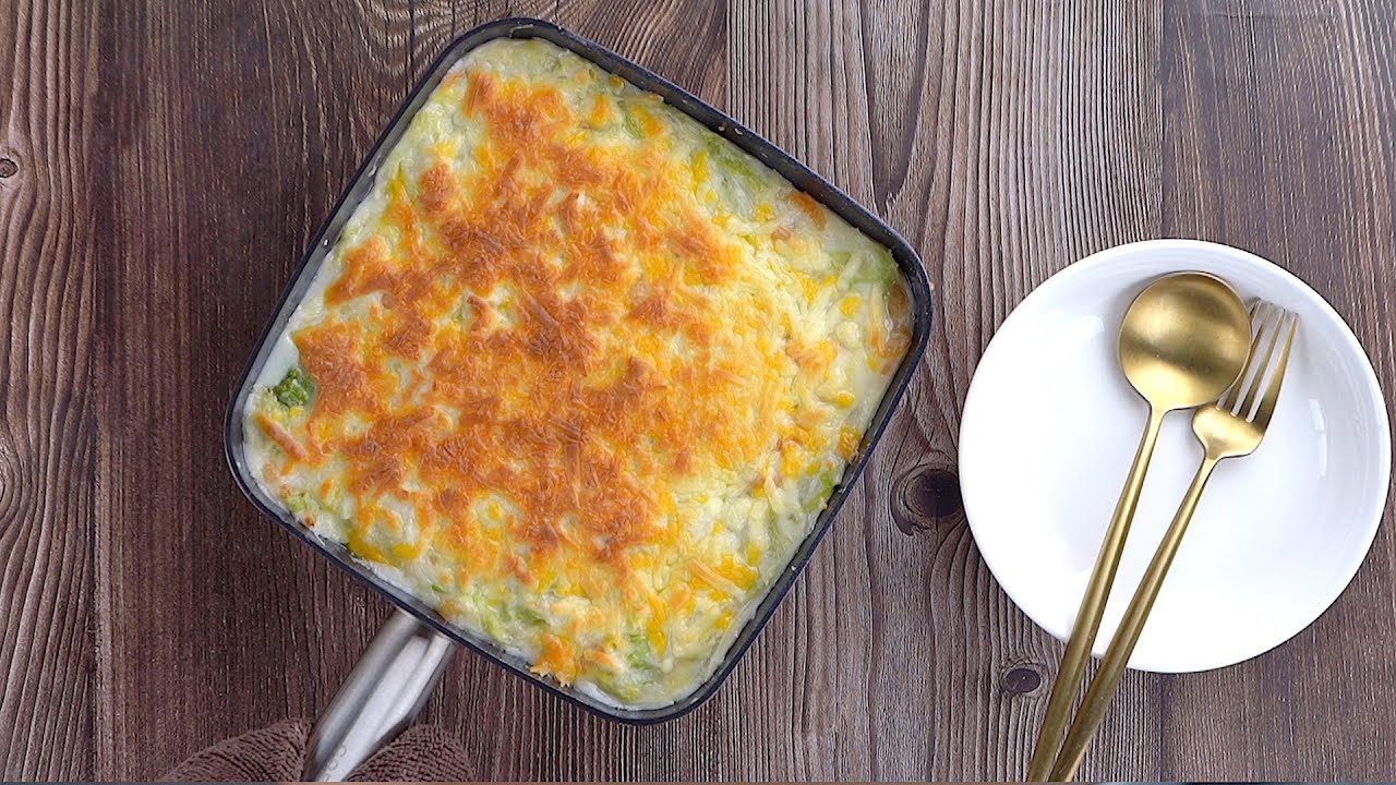📌買方形黑鑽5件組按這裡→ https://lihi1.cc/xYttA 材料: 捲心白菜700公克/ napa cabbage 700g 鮮奶150公克/milk 150g 蝦米30公克/baby shrimp 薑末5公克/ginger 5g 奶油20公克/butter 20g 麵粉3大匙/flour 3tbsp. 高湯150公克/ stock 150g 起司絲適量/shredded cheese qs 調味料鹽1茶匙/salt 1tsp. 糖1/2茶匙/sugar 1/2tsp. 作法: 1.白菜切大塊洗淨。 2.煮一鍋水至滾,放入白菜,煮滾後再煮約1分鐘,至白菜軟化,再撈起,輕輕壓一下瀝乾水份。 3.熱鍋,放入奶油煮融,再放入薑末炒香。接著放入麵粉,炒至麵粉變黃且香氣散出。 4.放入蝦米炒香,分次加入高湯,將麵糊慢慢炒散。再分兩次倒入鮮奶,加入所有調味料,將醬汁至煮至均勻且濃稠。 5.放入燙過的白菜,攪拌均勻讓白菜裹上醬汁後熄火。表面撒上起司絲。 6.烤箱預熱至200℃,將作法5放入烤箱中,以上下火200℃烤約10非分鐘至起司融化且上色即可。 – 楊桃美食網http://www.ytower.com.tw Youtube https://www.youtube.com/user/ytower01 Facebook https://www.facebook.com/ytower01