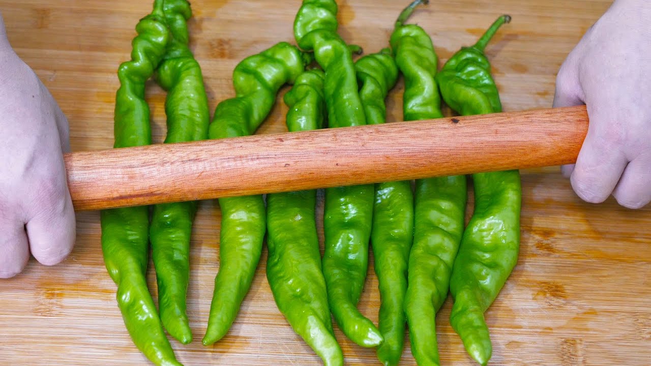 青椒用擀面杖压一压,太厉害了,没想到这么好吃,实在太下饭了!Green pepper recipe