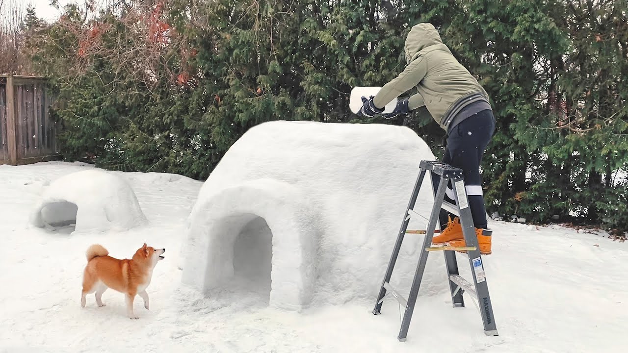 主人花了一週時間,終於給狗狗造了一個巨型冰屋!