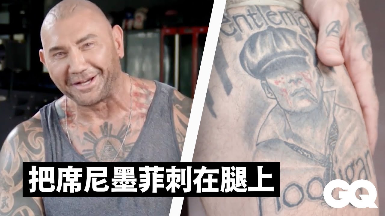 前WWE傳奇和《星際異攻隊》的戴夫·巴帝斯塔(Dave Bautista)介紹了他的紋身。從花了快50個小時刺的背部刺青,到他大腿上的小狗刺青,這位前職業摔角手和現任電影演員分享了他刺青背後的故事。點擊看更多明星刺青旅行 ► https://reurl.cc/QWKn3p