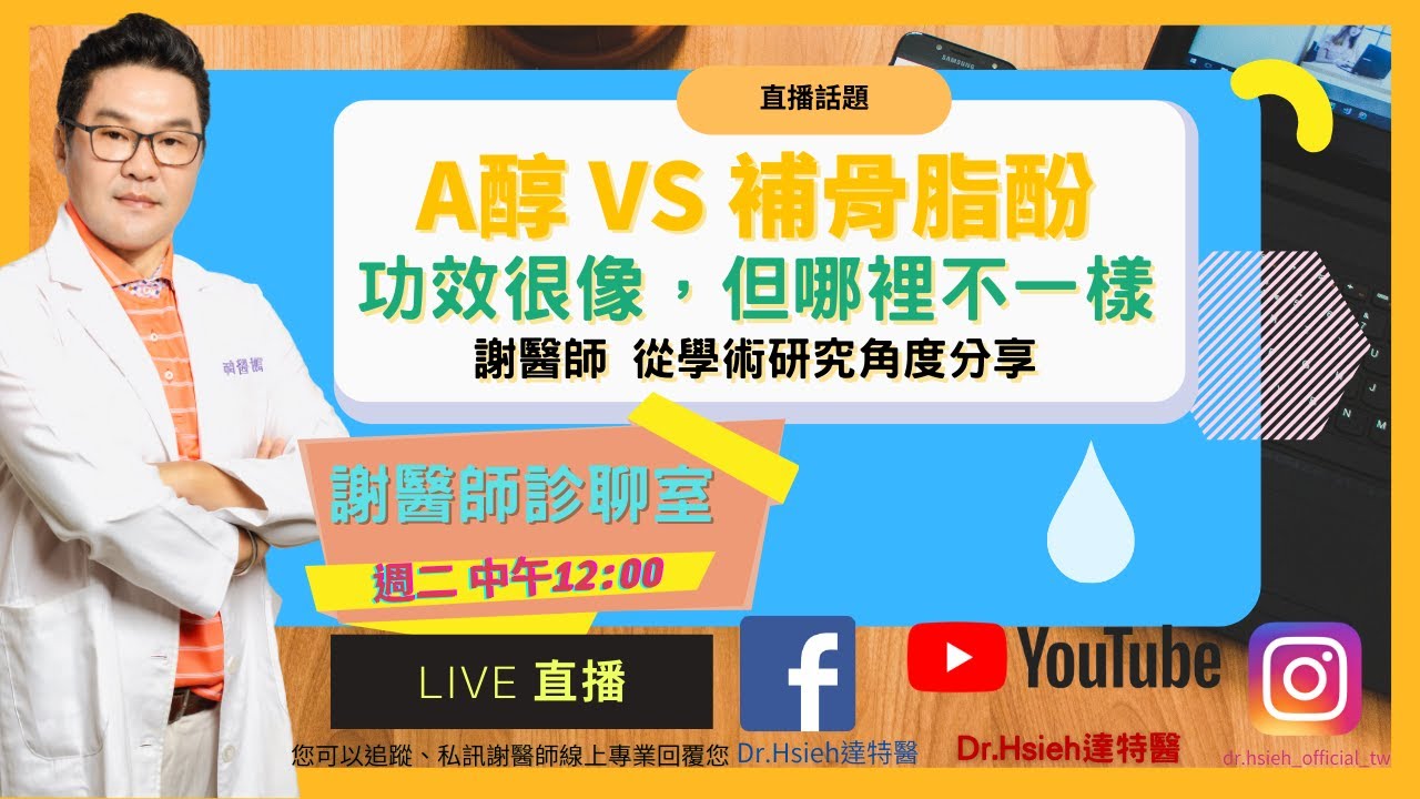 #A醇#補骨脂酚這2種成份常被拿來討論因為它們功效類似,不僅在對抗肌膚老化問題、光照後修護、緊緻抗老等效果上,都有相近的成效但是它們的機轉和作用,以及在成份特性上,還是有稍微的不同之處唷謝醫師帶您從論文研究角度,探討A醇和補骨脂酚的相似與不同的地方在保養品上的運用又是如何發揮作用的#抗老#抗皺#緊緻————————————— ▾▾▾ 更多資訊請展開▾▾▾ ✨相關資訊|了解保養使用/ 產品搭配/ 肌膚諮詢✨ 🔜歡迎到我們的官網:https://www.dr-hsieh.com/ 🔜產品膚況解析:https://reurl.cc/qO6xYn 🔜成分知識文章:https://reurl.cc/Gx58V3 🔜危肌知識文章:https://reurl.cc/X470Lg ✨歡迎訂閱✨ 🔜FB粉絲團:https://www.facebook.com/drhsieh2007 🔜IG:https://www.instagram.com/dr.hsieh_official_tw/ 🎬謝醫師診聊室:每週二臉書+Youtube頻道. live直播聊天.肌膚問題諮詢謝醫師。