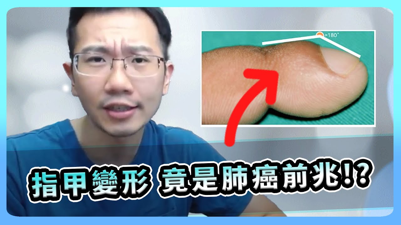 蒼藍鴿精選作品及健康好物推薦▶ https://portaly.cc/bluepigeon 加入Youtube會員支持科普頻道▶ https://reurl.cc/j7lLdn 訂閱LBRY頻道以備不時之需▶ https://ppt.cc/fNJ2px *蒼藍鴿使用的保健品牌「藥師健生活」: 輸入折扣碼「bluepig」享全品項9折優惠! 點我購買▶ https://www.phargoods.com/ #杵狀指#指甲變形#肺癌#惡性腫瘤#慢性肺病#慢性缺氧#癌症#指甲隆起#指甲增厚#癌細胞#癌友#癌症初期#肺癌初期#ClubbingFinger 「Kevin MacLeod」創作的「Breaktime – Silent Film Light」是根據「Creative Commons Attribution」授權使用來源:http://incompetech.com/music/royalty-free/index.html?isrc=USUAN1100302 演出者:http://incompetech.com/ 【蒼藍鴿的熱門影片】 關於『癌症』的真相! ► https://youtu.be/tYKIhSoBIrg 大胃王吃了這麼多為何不會胖?網路真相揭密! ► https://youtu.be/StGteShJaLM 為何早餐店奶茶是「地表最強瀉劑」?網路真相破解! ► https://youtu.be/B37Dek2u1lY 實測挑戰!你看得懂醫生寫的病歷嗎? ► https://youtu.be/mgxRuDbSV88 失眠淺眠怎麼辦?這幾招讓你一夜好眠! ► https://youtu.be/28fdCrV6EKo 念醫學系真的好嗎?一路上的心境歷程有什麼變化? ► https://youtu.be/a9z4YK1qH38 癌症新療法「免疫治療」有多貴?原理是什麼? ► https://youtu.be/TJduprv5uhQ 【追蹤蒼藍鴿】 FB粉專▶ https://www.facebook.com/bluepigeonnn/ Instagram ▶ https://www.instagram.com/bluepigeon0810/ Line Voom ▶ https://ppt.cc/fW8IVx Tik Tok ▶ https://ppt.cc/fBehOx 歡迎蒞臨討論,別忘了按讚跟追蹤!影片也歡迎分享! 【關鍵字】 蒼藍鴿/醫師/醫生/醫學/醫學系/台大醫學系/健康/保健/工作細胞