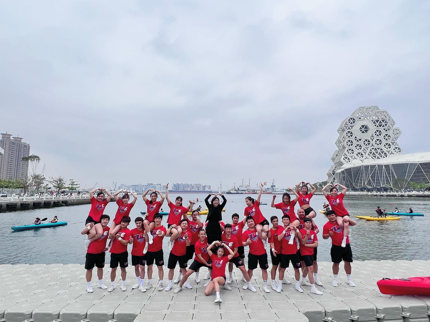 今天非常開心能夠邀請「中華競技啦啦隊協會-中華代表隊」為這次愛河灣春吶活動的開幕嘉賓,他們一早便來到高雄愛河灣遊艇碼頭練習👏🏻。