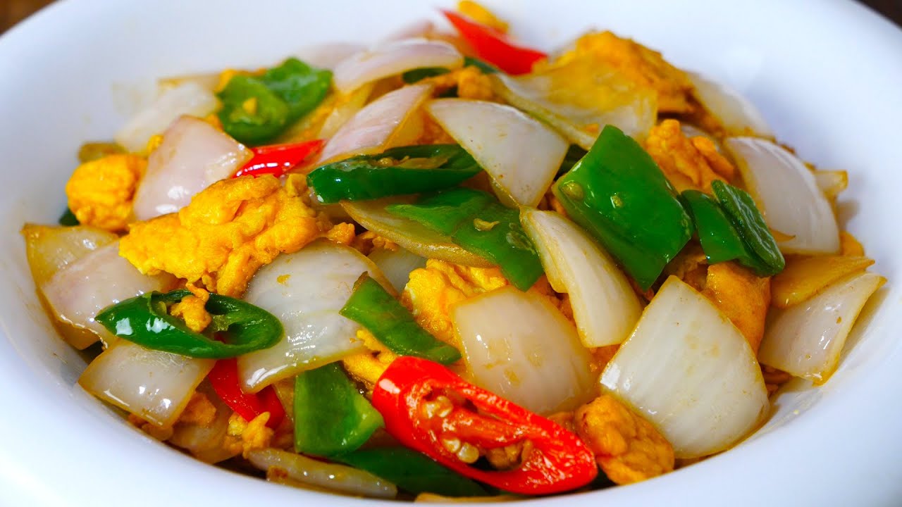 美味的洋葱炒鸡蛋做好了
