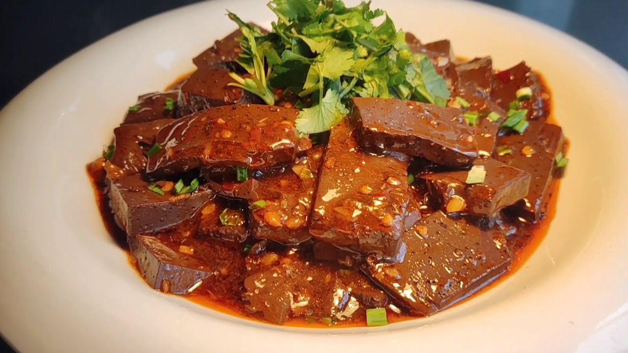 The Chinese food I want to share with you today is Spicy lamb blood.