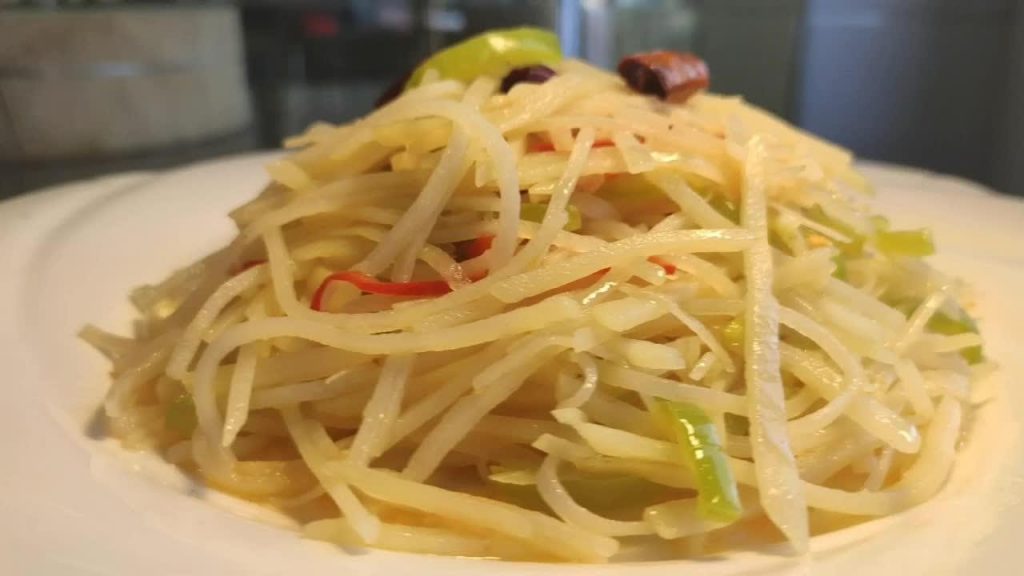 The Chinese food I want to share with you today is Green pepper potato silk.