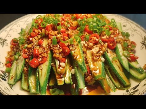 The Chinese food I want to share with you today is Okra salad.
