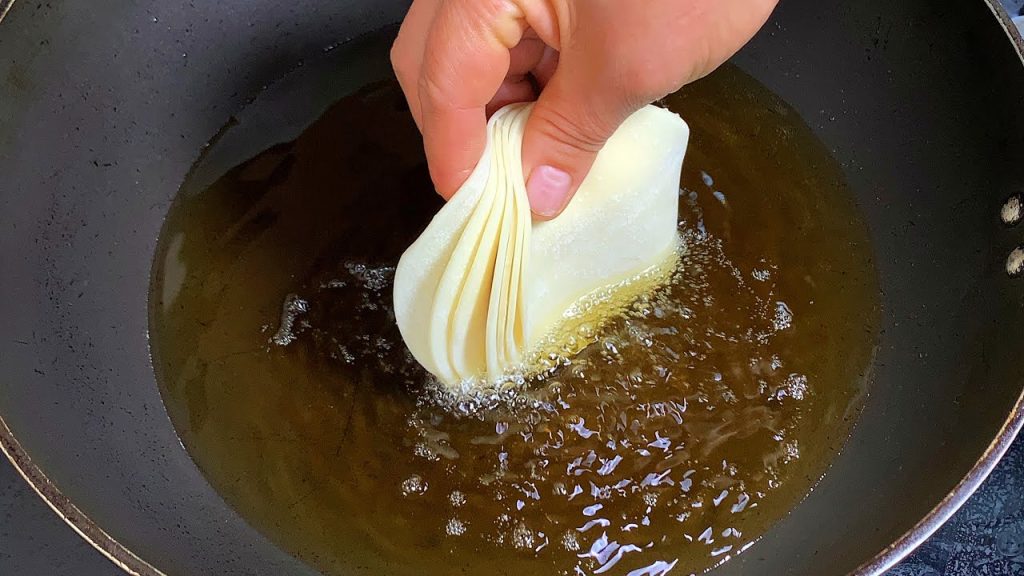 饺子皮扔进滚烫的油锅中,做美味零食,我家一周吃5次,营养解馋【刘姐厨房 Magic Food】#面食 #零食