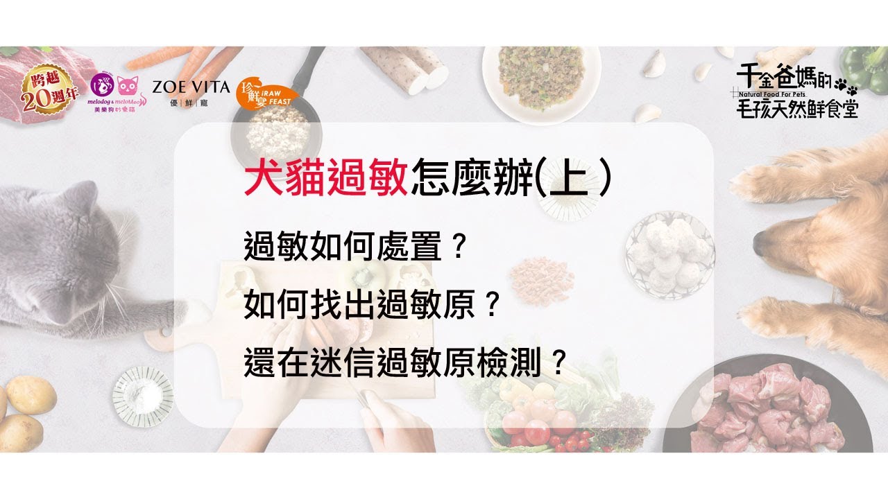 超過20年毛孩健康志業,毛孩健康的靠山超過16年健康驗證的寵物鮮食實務完全揭露🐕🐈🐕🐈🐕🐈 視頻介紹: 我們要談的過敏主題有四個重點ㄧ、發生過敏如何處置二、找出過敏原三、如何避免發生過敏四、如何改善過敏完整看完,對犬貓的過敏會有完整的認識🐕🐈🐕🐈🐕🐈 本集內容: ㄧ、發生過敏如何處置二、找出過敏原犬貓一有過敏時,會先排除牠是不是有碰到什麼東西?昆蟲、蟑螂、環境用藥、植物、新傢俱上的塗料,都可能導致牠們過敏。排除接觸性的過敏後,再來看是否是食物造成過敏。食物過敏通常會被視為食物引起的不良反應的其中一種而已。食物引起的不良反應,共有六種: 第一種是食物過敏,因食物成份,產生對免疫系統的不良反應。第二種是食物的耐受性不良。即與免疫無關的不良反應,例如有人喝牛奶會拉肚子就叫乳糖不耐。或是有人會對澱粉麩質的耐受性不好,比較容易產生一些不良反應,但與免疫無關。第三種是代謝的不良反應,就像有的人喝酒會臉紅,或特別容易醉。第四種是食物過敏,與免疫無關,純粹是吃它會產生過敏反應,要透過檢疫去區分。第五種是食物中毒,食物有一些毒素,像是黃麴毒素、內毒素。第六種是藥理反應,例如吃了不新鮮的魚,產生組織胺,進而造成過敏。其實吃新鮮的魚就不會。犬貓過敏對家長很棘手,因為犬貓不會說話,不論牠剛接觸什麼,或吃了什麼,也無法告知家長吃下東西後如何,完全需靠家長觀察紀錄,以釐清判斷。犬貓過敏嚴重還是要看醫生,若不嚴重或半夜臨時發生過敏時,可以在家中準備什麼東西來緊急應變?找出過敏原的好方法是什麼?抽血檢驗過敏原有效嗎?下一個視頻來談如何避免過敏以及如何改善過敏。 🐕🐈🐕🐈🐕🐈 犬貓鮮食新手入門指南目錄篇https://www.facebook.com/groups/furkidsfood/posts/3663710080326569 犬貓鮮食快速啟動指南https://www.facebook.com/groups/furkidsfood/posts/3553924751305103/ 🐕🐈🐕🐈🐕🐈 鮮食不是廚藝比賽,你要明白的是如何決定食材比例,而不是食譜🐕🐈 多元鮮食及補充品、多樣食材購買請上「毛孩子的店」https://www.furkidshop.com.tw/ 🐕🐈 或至實體門市《毛手毛腳》毛孩專門店—-最齊全的犬貓鮮食專賣(每週日,一公休) 豐富而多元的犬貓即食鮮食、自煮鮮食所需的多樣食材及天然補充品、各種天然用品👉👉都在以下門市陳列販售: 新北林口店:新北市林口區南勢四街48號台北建國店:台北市大同區酒泉街161號新北板橋店:新北市板橋區板新路157號台中南屯店:台中市南屯區文心南路22號高雄左營店:高雄市左營區重愛路430號https://www.furkidshop.com.tw/about/content/7/ 🐕🐈 更多專業鮮食與健康相關文章部落格:阿公阿嬤碎碎念http://www.murmurdnk.tw/ 最專業的最健康的寵物鮮食社團:毛孩健康鮮食同好會https://www.facebook.com/groups/furkidsfood/ 🐕🐈 記得按讚、訂閱+分享並開啟通知👍👍 支持我們繼續研究發表也幫助更多犬貓毛孩更健康! 💪💪👍👍