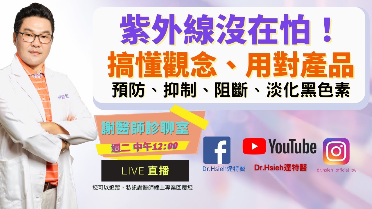 #達特醫#美白#防曬#防曬霜皮膚色階一天一天變黑,明明這樣躲、那樣防,還是曬黑了!紫外線無所不在,搞懂預防、抑制、阻斷、淡化,光速變白謝醫師從專業角度和您分享,搞懂原理,紫外線一點都不可怕————————————— ▾▾▾ 更多資訊請展開▾▾▾ ✨相關資訊|了解保養使用/ 產品搭配/ 肌膚諮詢✨ 🔜歡迎到我們的官網:https://www.dr-hsieh.com/ 🔜產品膚況解析:https://reurl.cc/qO6xYn 🔜成分知識文章:https://reurl.cc/Gx58V3 🔜危肌知識文章:https://reurl.cc/X470Lg ✨歡迎訂閱✨ 🔜FB粉絲團:https://www.facebook.com/drhsieh2007 🔜IG:https://www.instagram.com/dr.hsieh_official_tw/ 🎬謝醫師診聊室:每週二臉書+Youtube頻道. live直播聊天.肌膚問題諮詢謝醫師。