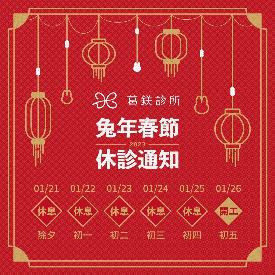 Share Facebook Twitter LinkedIn Pinterest Email [ad_1] 2023新年快樂🧧 葛鎂診所 在這給大家拜個早年🎊 預祝大家兔年行大運 賺錢賺到ATM吐鈔”兔”不完 下方是我們”春節休診”的時間 1/21~1/25休診 1/26後就繼續開始塑造美麗唷~ [ad_2] 閱讀更多 2023新年快樂葛鎂診所 IBEAUTY 在這給大家拜..