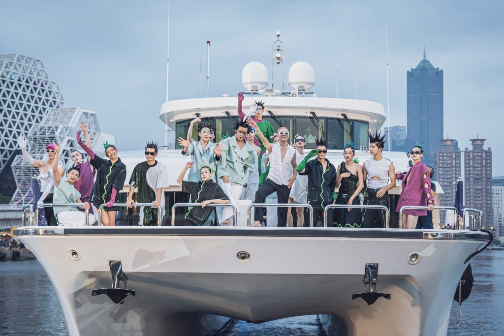 亞果遊艇集團(7566)昨(15日)與台北時裝週、高雄市政府青年局-2023高雄時尚大賞(KFA)攜手,顛覆時裝秀的場域限制,表演遊艇自光榮碼頭出發,繞行愛河灣至第三船渠,由伊林模特兒在遊艇上演繹高雄時尚大賞10組入圍決賽設計師作品,接著由臺北時裝週-旅德設計師黃世舜品牌「#DAMUR」搶先曝光2024年春夏大秀6套服飾,展開海上行動時尚藝術,體現船即生活、生活即藝術的概念,再創海洋與遊艇休憩體驗的創新體驗。