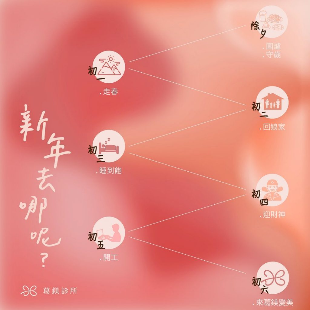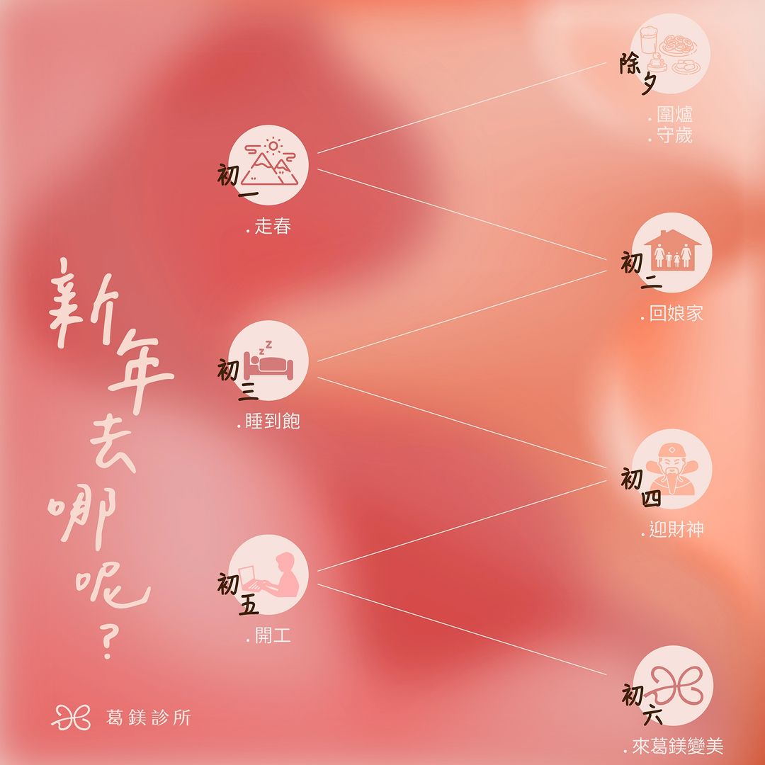 Share Facebook Twitter LinkedIn Pinterest Email [ad_1] 小編分享農曆新年注意事項👋👋👋 🧧除夕禁忌-吃光年菜、早睡、不洗澡 🧧初一禁忌-洗頭、打掃、睡午覺 🧧初二禁忌-洗衣服、晚宴女婿 🧧初三禁忌-早起出門、晚睡、吃米飯 🧧初四禁忌-出遠門、在廚房吵架 🧧初五禁忌-囤積垃圾、拜年 🧧初六宜-葛鎂診所開工啦 [ad_2] 閱讀更多 IBEAUTY 小編分享農曆新年注意事項除夕禁忌吃..