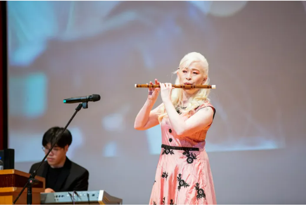 演出內容更是豐富多元,由慈琳朱萬花(弱視)主持、Life爵士樂團團長吳柏毅(弱視)演奏薩克斯風、彭桂珠/時懋菁的古箏獨奏及合奏、任文倩(肢障)的深情獻唱、五眼樂團團長黃東裕(盲)的小提琴/蘇政偉的鋼琴合奏、徐百香(盲)/徐雅惠(弱視)的雙重合唱、王淮禎行雲流水的武術、繆沁琳(弱視)的笛子演奏。