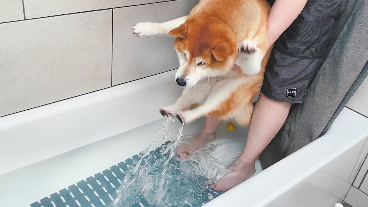 IBEAUTY Oka the Shiba Inu 柴犬Oka 狗狗害怕洗澡超崩潰下一秒被主人丟水裡場面太好笑了 萌寵
