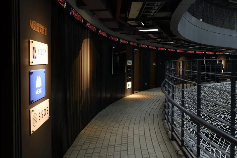 宛若來到紐約證交所的環境,區塊鏈與數位資產研發基地不僅帶給學生完善的數位金融教育,更提供高規格的教學環境。
