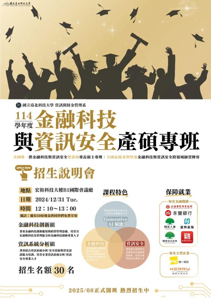 北科大「金融科技與資訊安全產碩專班」全台唯一跨領域培訓專才