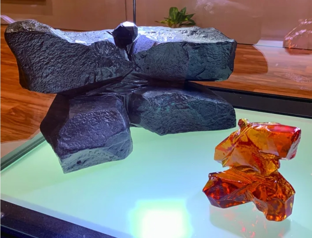 琉璃太極系列作品首先需精選出360度黃金比例的澎湖柱狀玄武岩太極,先開立矽膠模、FRP模,再開立生成模、蠟模,以傳統脫蠟鑄造技法製作,透過多道繁複工序,打造出每件晶瑩剔透、色彩變幻的琉璃太極藝術作品。琉璃材質在光影折射間呈現非凡的動態美感,展現太極哲學中能量流動的精髓。每件作品宛如靜中有動、動中有靜的視覺詩篇,不僅是空間中的亮點,更是哲思與美學的交融。