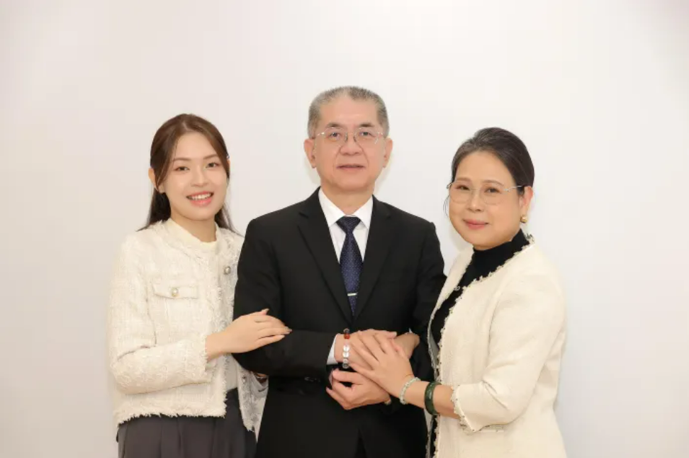 涂瀞云(左)與父母—弘願禮儀創辦人涂智能與孫楚晴。